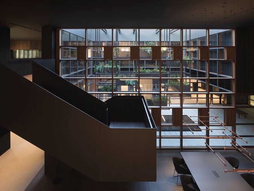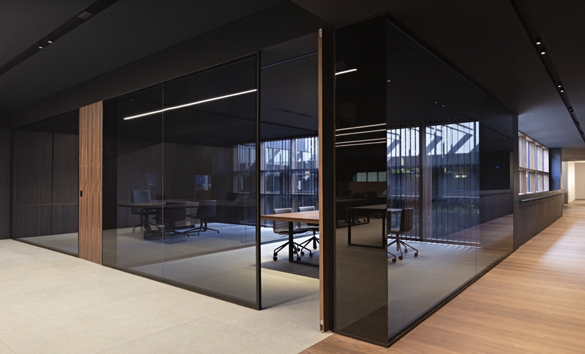 来自西班牙的一个黑色系办公空间设计,对于光的利用和角度的切入值得细讲一番,空间不仅仅是使用这么简单,它背后还包藏着艺术。无论是光线还是其他装饰品,从通高的门厅开始选用胡桃木,在不同部分布置了细长板条状的家具,让黑色钢铁作为调和融入其中,将接待桌和通行门与工作区结合。黑色有一种奇妙的质感,对于光的敏感度也对高,如果想用两种最有区别性的色彩去创造对比,这种方式非常适合了。