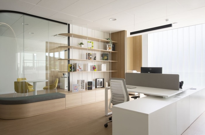 除此之外,他们还渴望在场所中实现真正的纯净和优雅,他们通过清醒的美学选择以及以规则和流畅的方式存在曲线来强调这一点。这样,眼睛就不会受到干扰;环境感觉柔和而熟悉,精华可以真正专注于味觉和嗅觉。#办公楼设计装修案例#