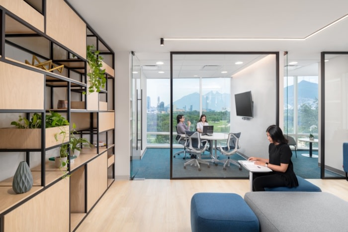 设计师优先考虑可见性和连接性。室内的视觉障碍非常少,以至于在通过接待处后,用户无论站在哪里,都可以一览无余地欣赏蒙特雷标志性的山脉。即使是为数不多的私人办公室也采用搪玻璃,以方便连接和沟通。日光为干净、中性的材料调色板注入了活力,极简主义的感性突出了城市的自然美景,同时让员工能够集中注意力。罕见的流行色彩增添了活力,结果是明亮而温暖的——几乎是舒适的。一个快乐的工作场所。#办公室装修设计报价#