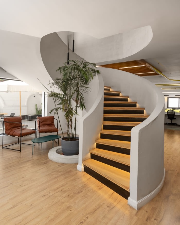 设计理念颂扬木材的原始美和回收材料的可持续性,其中自然纹理和色调与环保元素一起成为中心舞台。空间的建筑本身讲述了一个转变和成长的故事,原木和回收材料被精心融入设计中,提供温暖、真实和环境责任。#办公室装修设计#