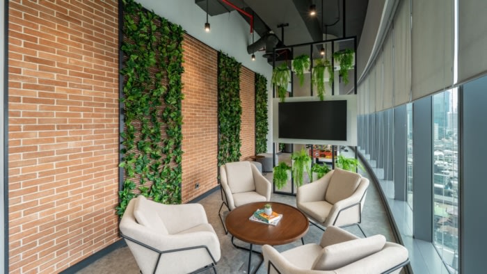 办公室设计:苔藓墙作为亲自然元素被纳入其中 以提升工作空间的活力