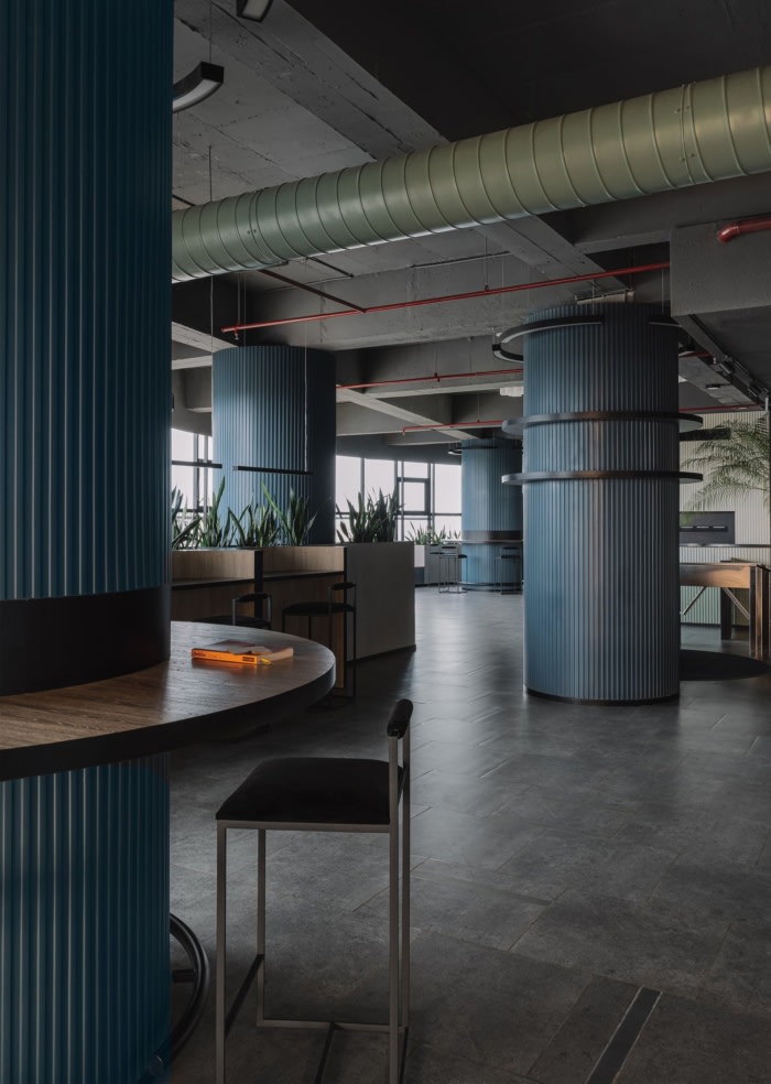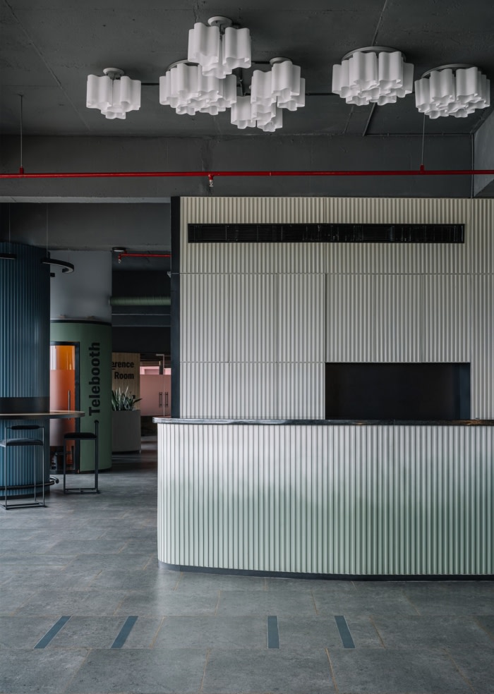 柔和的角度和圆润的轮廓消除了粗糙感,为多功能实用空间铺平了道路,这些空间可用作休息区、储物单元和高桌,鼓励自发的参与和充满活力的活动。#公司办公室设计理念#