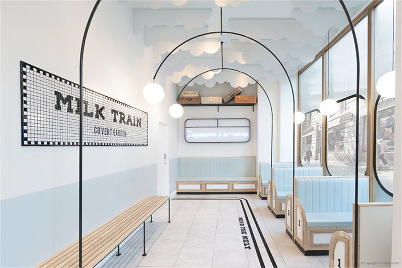 第一反应是做奶制品的公司如果是这样多好,办公室设计方案主题如果是牛奶列车,想象一下在这样的环境中上班,会有度假的心情吗?正儿八经介绍一下这个漂亮的地方,这是位于伦敦的Milk Train冰淇淋咖啡小店,有趣、优雅、精致、迷人,谁不想去这间冰淇淋咖啡馆试试呢。