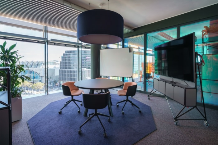 该区域分为内部区域和公共区域,为每项活动提供适当的鼓舞人心的工作环境,无论是集中工作、团队和项目工作、研讨会、混合视频会议还是客户演示。移动白板和可卷曲屏幕优化了敏捷的工作流程。#办公室装修公司#