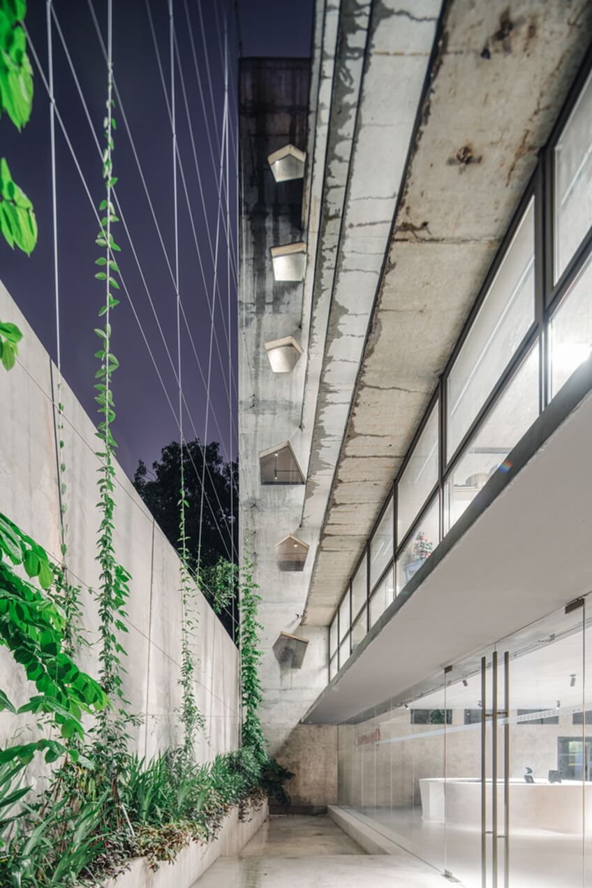 在建筑物的后面,开放的垂直空间允许站点产生自己的光线和通风,从附近混乱中过滤出来的软过滤器。在铜的轻盈色调和精细的抛光细节上,混凝土的粗糙纹理和精细的抛光细节的普遍使用,传达了将粗糙到珍贵,从畜生到抛光的理念。