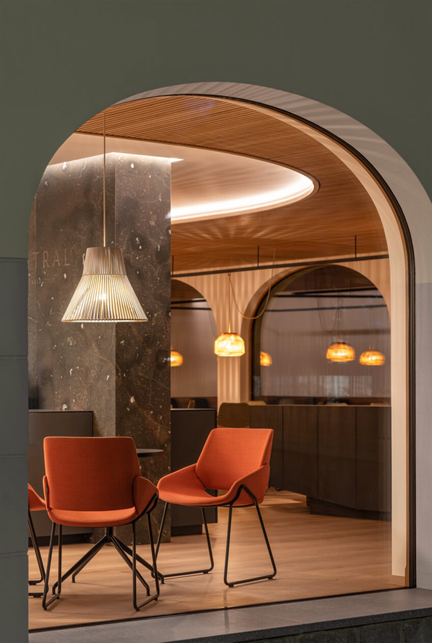 通过对老化房屋重建与设计,创建一家受欢迎的咖啡屋和餐厅。由广州装修设计为其讲述该入口通向酒吧区。天花板装饰作为灯光和吸音器的标志,咖啡厅中心由拱门和舒适的坐姿安排,讲述了过往的街道生活,内外的界限变得模糊了。