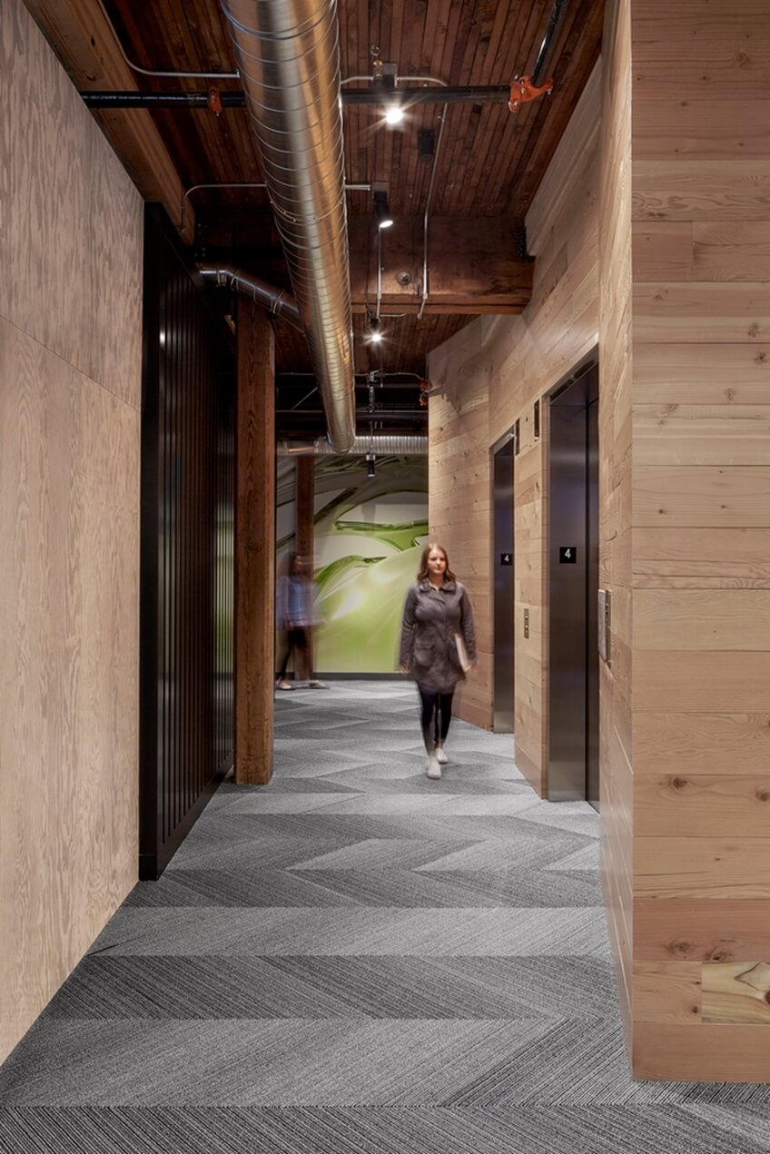 协作室和会议空间受到小型房屋运动的启发,反映中心东区社区工业历史的材料调色板,并融合当地制造商的工作。使波特兰整个工作场所都编织着文化主题,向城市的工匠、城市地标、地理和历史致敬。