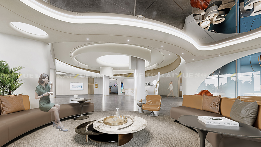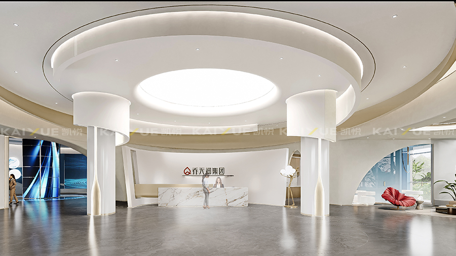 以几何之美,筑未来空间之梦境;此次乔天润集团新总部办公大楼的设计包含:办公、展示、美容中心、会所、顶层花园等区域,创意与科技共舞,空间与艺术共生。步入这座建筑,仿佛踏入一座由科技与创意编织的奇妙殿堂。弧形线条从地面自然生长,延伸至空间每个角落,如同穿越时光的隧道,连接现实与未来。